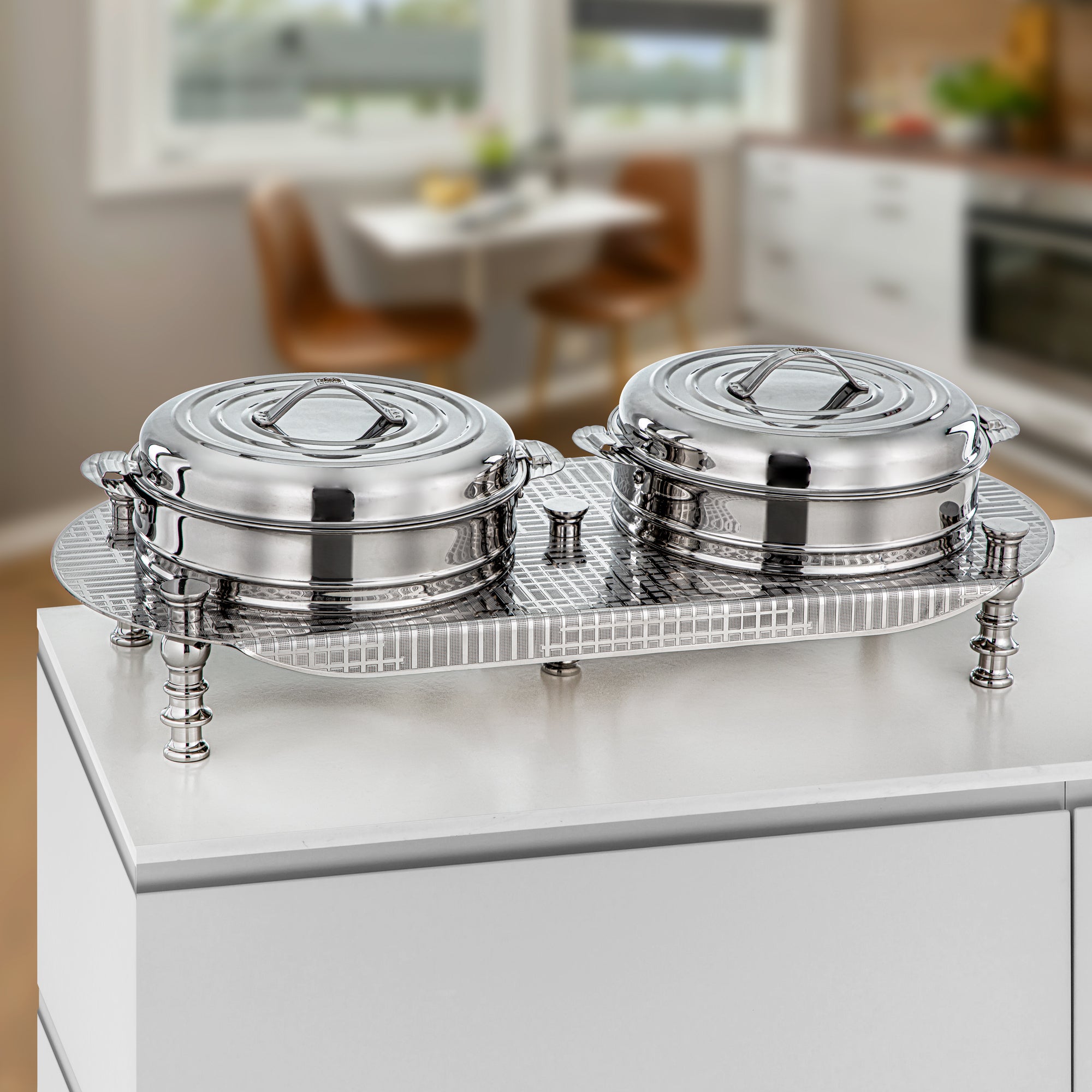 Almarjan Chafing Dish Stainless Steel 1.25L Silver & Gold (MD-3017) - Stylish Serveware